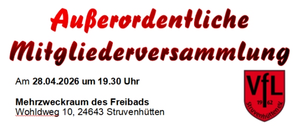 Newsletter des VfL Struvenhütten Formlose An-/Abmeldung unter info@vfl-struvenhuetten.de |