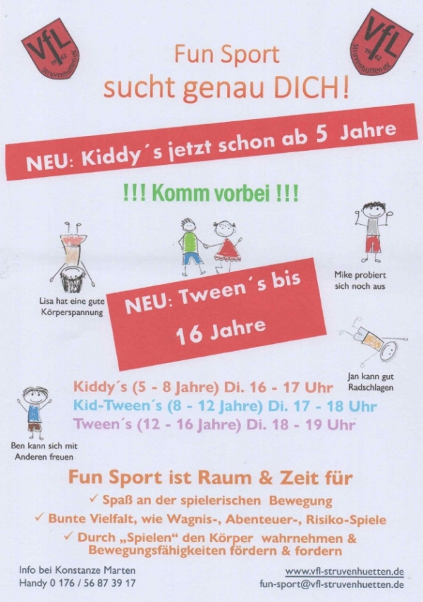 Übungsleiterin gesucht ! Der VfL Struvenhütten sucht zum nächstmöglichen Termin |